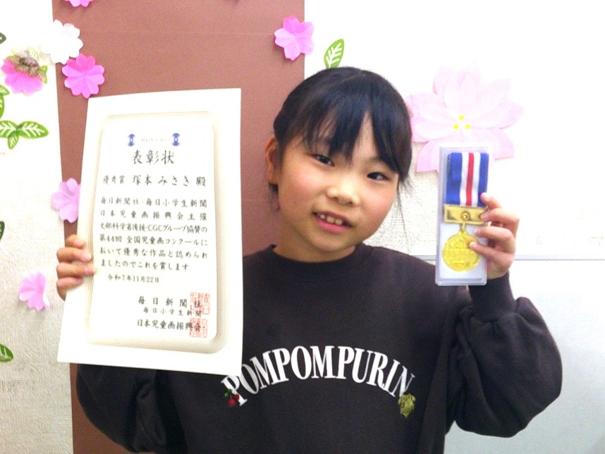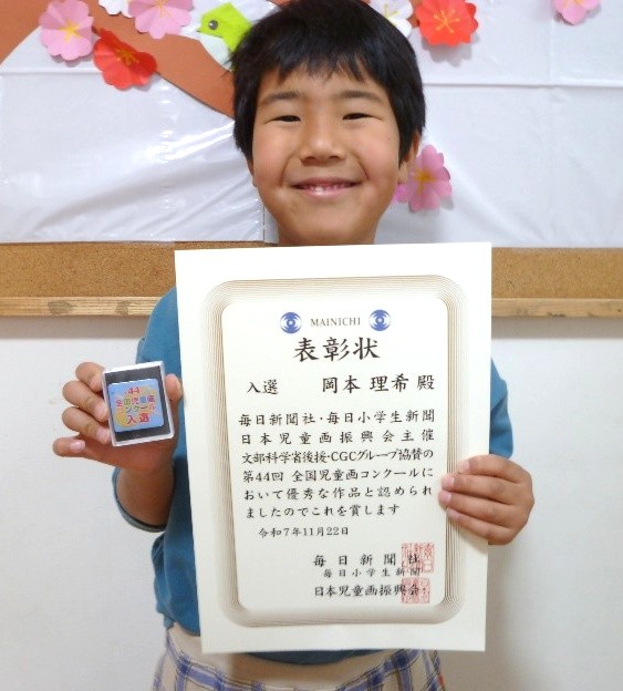 令和7年度『全国児童画コンクール』 トップページ > トピックス一覧 > お知らせ > 令和7年度『全国児童画コンクール』 夏休み恒例の児童画コンクールに、全クラブからたくさんの絵を出展したところ、今年度は1名が『優秀賞』を、1名が『入選』に選ばれました!! おめでとうございますヾ(o´∀`o)ノワァーィ♪ 『優秀賞』キッズスペースみらい 2年 塚本 充咲さん キッズスペースつばさ 1年 岡本 理希くん